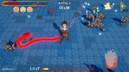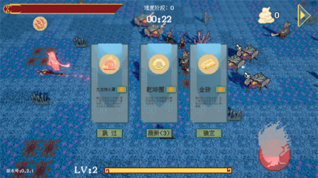3. 击败敌人后可获得经验,收集足够的经验值后可以升级,每次升级会提供三个随机法宝,选择一个进行强化,让战斗力不断提升。