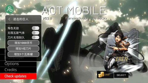 【进击的巨人】是一款高度还原原作精髓的动作冒险手游,凭借扣人心弦的剧情演绎、恢弘壮丽的场景设计以及个性鲜明的角色塑造,为玩家呈现了一个真实而震撼的巨人大世界。无论是城墙之上与巨人的生死对决,还是穿梭于城市废墟间的立体机动追击,每一帧画面都充满张力与代入感。本版本特别集成菜单功能,提供角色无敌、瓦斯无限、刀片耐久不损、金币增加1000、补给自动恢复等多项实用修改,助您轻松畅玩游戏核心内容。