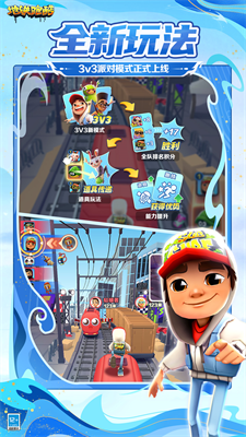 分数争霸赛:无尽模式达到指定分数可获得道具奖励,排名前10名还可获得地铁跑酷实体卡包。