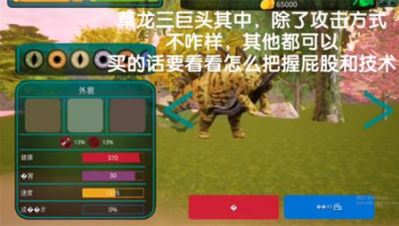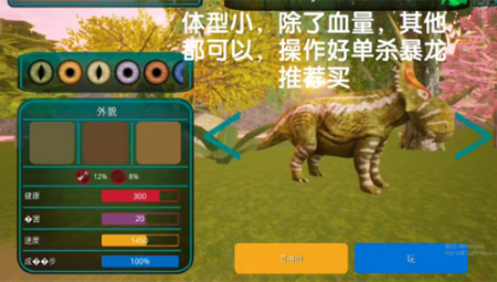 Styracosaurus:体型小,除了血量,其他都可以,操作好单杀暴龙推荐买