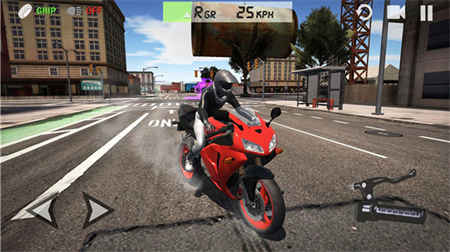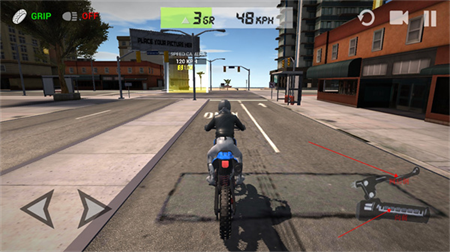 1. 下载安装好终极摩托模拟器,运行游戏后,左侧区域用于控制行驶方向;