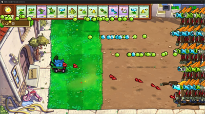 3、战斗中通过滑动屏幕控制植物上下移动,植物将自动攻击范围内僵尸。