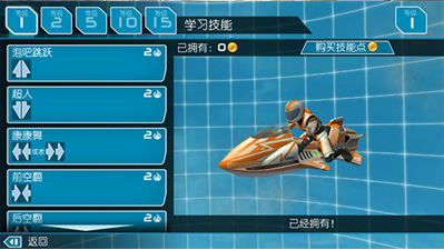2、内置数十种炫目特技动作,结合技能树系统,您可通过升级解锁新动作并自定义连招顺序,展现独一无二的空中风采。