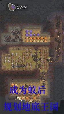 3、游戏中包含50余种不同蚂蚁,根据能力合理安排岗位,最大化王国效率。