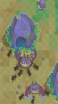 4、通过探索地图、收集稀有材料、升级强化个体蚂蚁,全面提升整体战力。