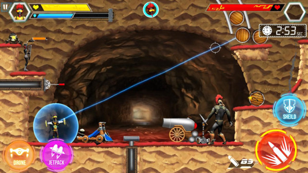 玩家操控的火柴人驾驶的宇宙飞船坠落了,来到了一个奇妙的的世界,玩家只能依靠手里仅剩的激光枪,通过关卡,搜集材料,修理飞船,逃出生天!