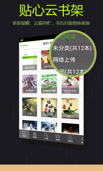 【海量书库】30万册图书书城,包括了各种精品出版物与网络原创小说。